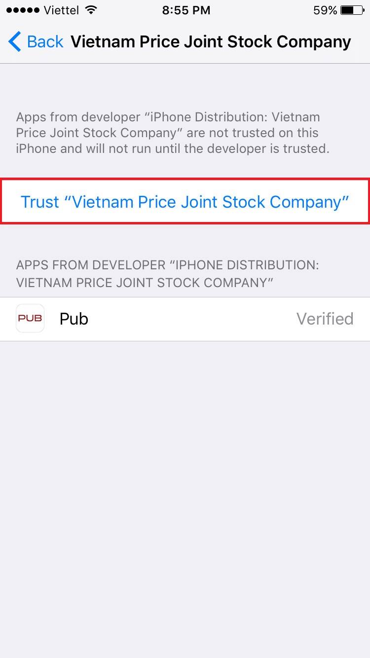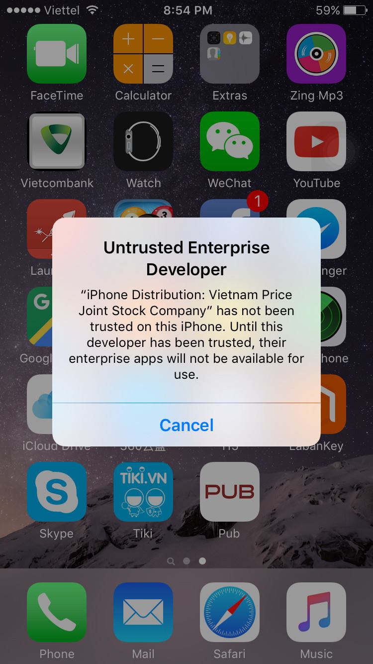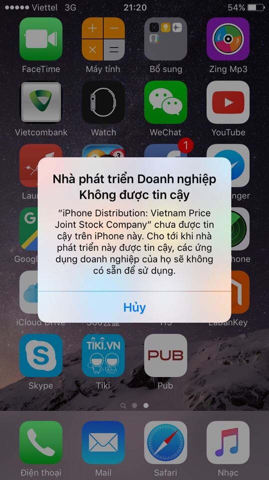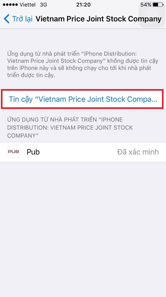 Khi bật app nếu gặp lỗi như hình dưới thì làm theo các bước sau (iPhone và iPad làm giống nhau)